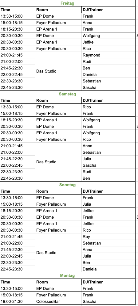 To organize your workshops and shows in the best way, please read the informations.