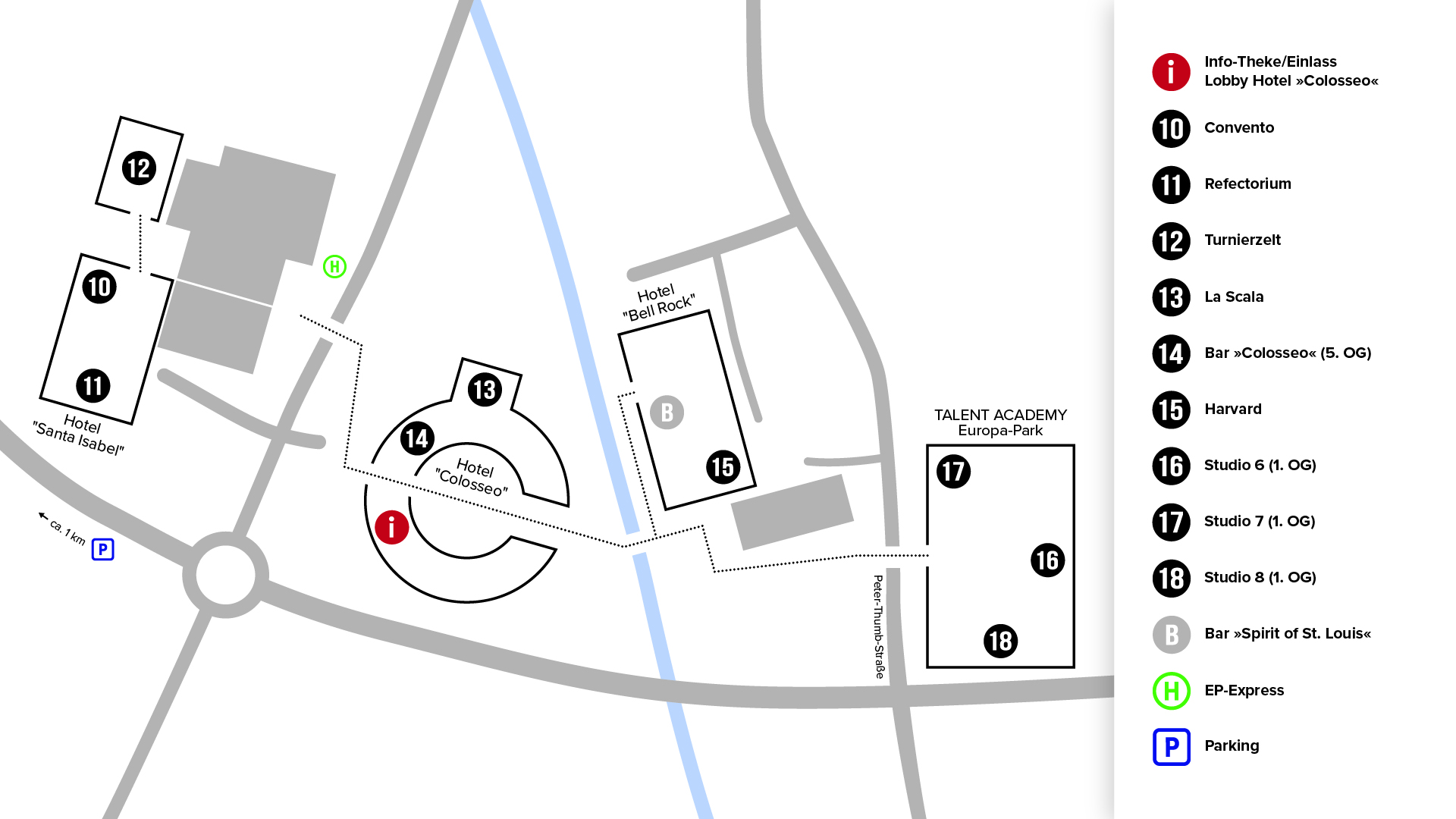 Der Freizeitpark selbst ist während der Festivalzeit geschlossen. Für Workshops und Abendveranstaltungen können daher Räumlichkeiten in den Hotels sowie im Confertainment Center genutzt werden.